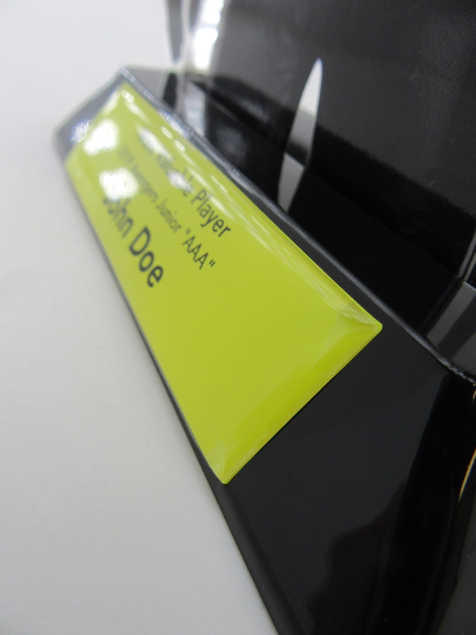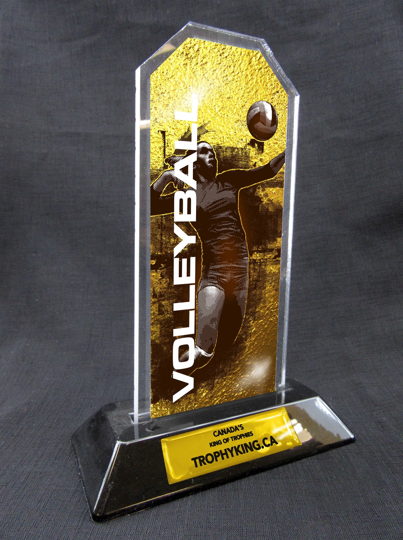Full-color high-res volleyball acrylic award. Includes single color personalized poly dome.